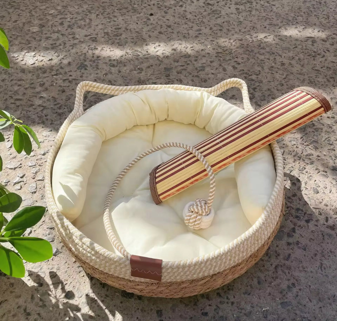 Katzenbett Katzenkorb Katzenhöhle Katzennest Haustierbett aus SIsal mit Kissen und Spielball, atmungsaktiv und waschbar.