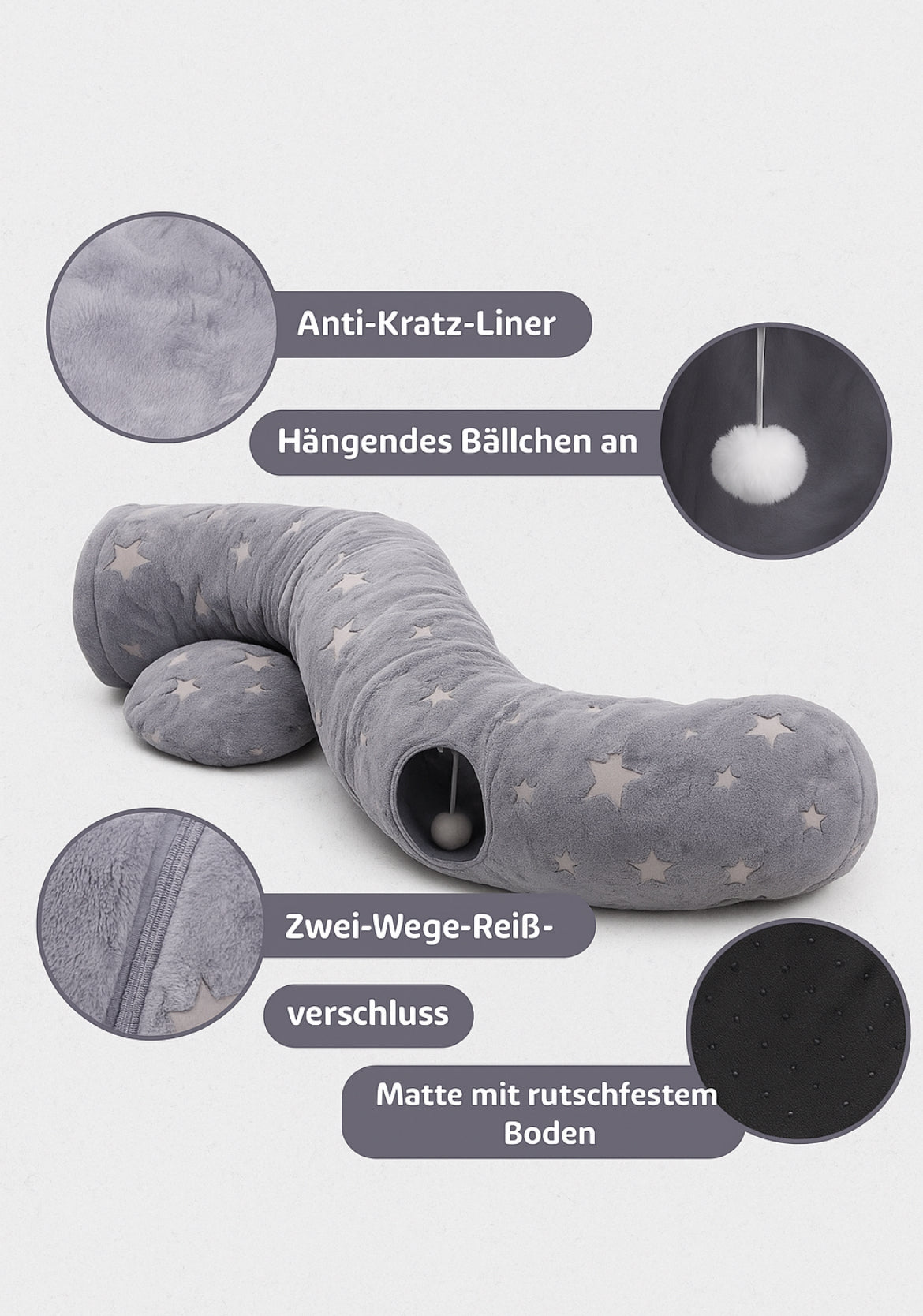Verwandeln Sie das Spielvergnügen Ihrer Katze mit unserem hochwertigen Katzentunnel! Dieser Tunnel ist nicht nur ein Spielzeug, sondern ein Abenteuer, das Ihre Katze stundenlang beschäftigen wird. Hergestellt aus strapazierfähigen Materialien, bietet unser Katzentunnel eine sichere und unterhaltsame Umgebung für Ihre pelzigen Freunde.